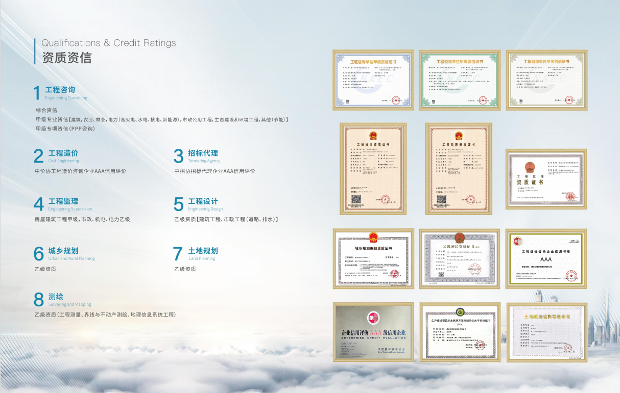 業績涉及各類公建、工業、能源、環保、交通、市政、城市軌道、國土整治等行業,包括海內外各類建設項目的工程咨詢、工程招標代理、工程造價咨詢、項目管理等咨詢業務...