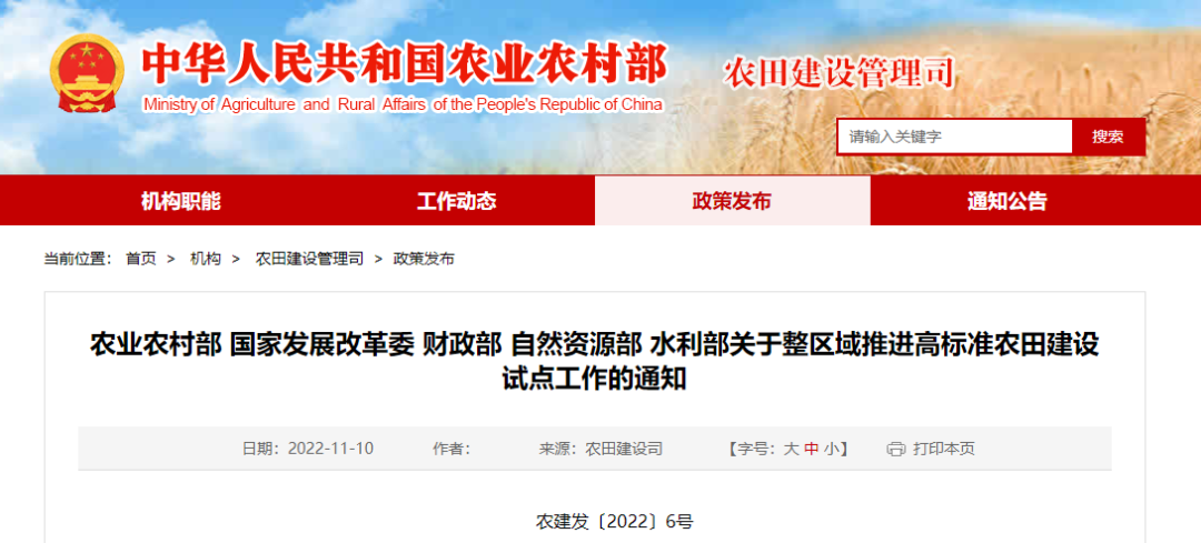 3. 五部門聯合發文《關于整區域推進高標準農田建設試點工作的通知》