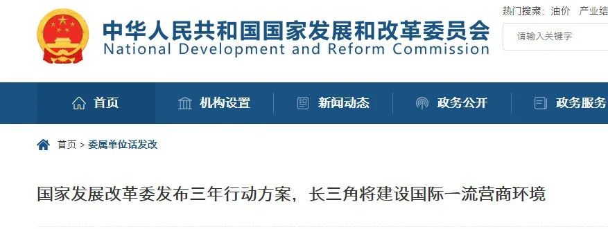 4.國家發展改革委印發《長三角國際一流營商環境建設三年行動方案》