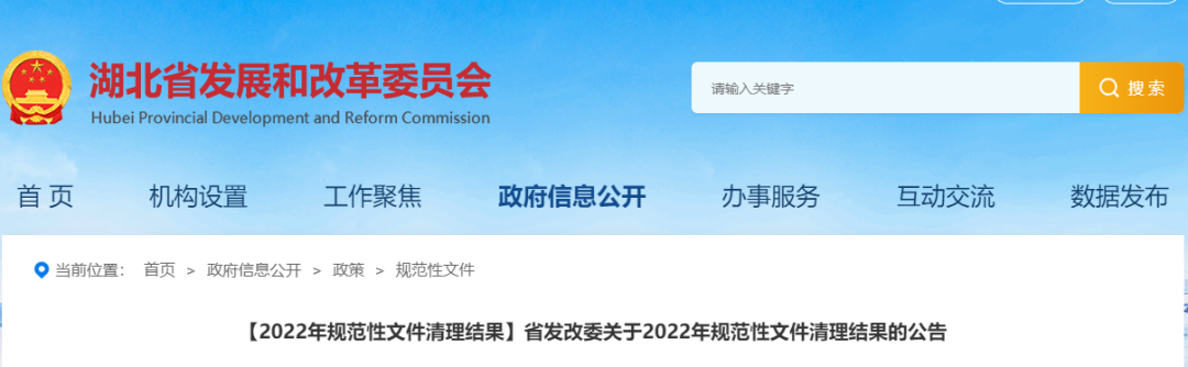 1.湖北省發改委關于2022年規范性文件清理結果的公告
