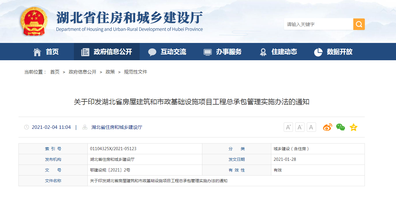 關(guān)于印發(fā)湖北省房屋建筑和市政基礎(chǔ)設(shè)施項目工程總承包管理實施辦法的通知