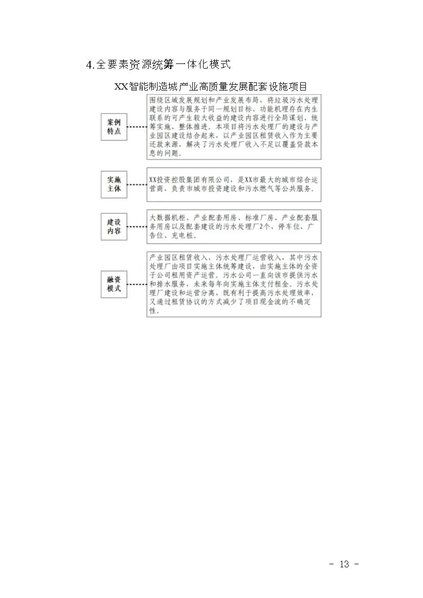 (三)系統思維,一體謀劃。各地要以縣(市、區(qū))為單位,綜合考慮發(fā)展需求,將區(qū)域或行業(yè)收益進行協同搭配,總體平衡。利用多重支持疊加,將單一領域的縣域生活垃圾污水處理設施建設項目策劃延伸到區(qū)域統籌的綜合型項目謀劃,鼓勵與長江大保護、美麗鄉(xiāng)村建設、縣城城鎮(zhèn)化補短板強弱項、產業(yè)發(fā)展等項目或產業(yè)有機融合,將有收益的項目和公益性項目搭配組合,將存量項目與新建項目搭配組合,發(fā)揮有限經營性資源的撬動效應,拓寬項目實施渠道。