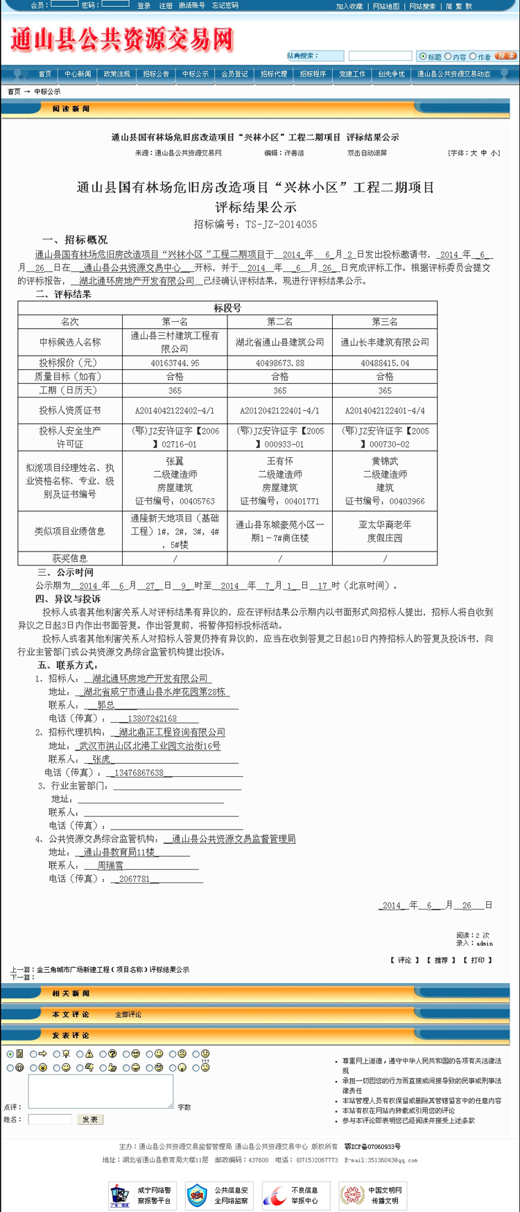 中標(biāo)公告