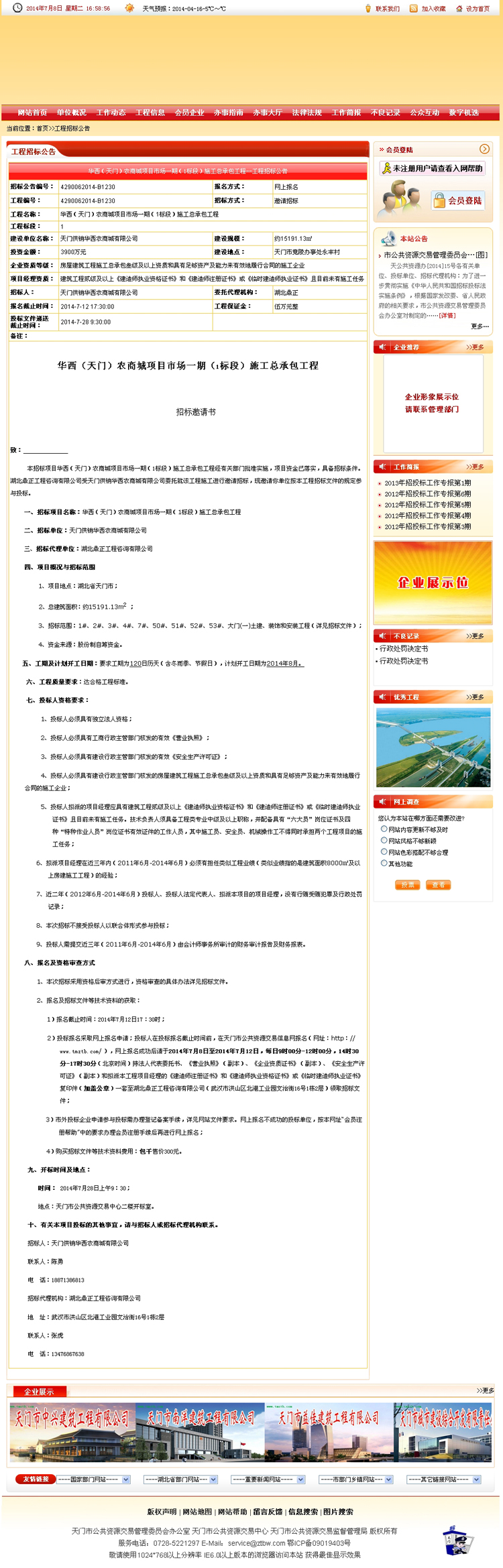 華西(天門)農(nóng)商城項(xiàng)目市場(chǎng)一期(1標(biāo)段)施工總承包工程