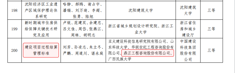 鼎正參與編制的《建設(shè)項(xiàng)目過(guò)程結(jié)算管理標(biāo)準(zhǔn)》(T/CECS 1178-2022)通過(guò)專業(yè)組和評(píng)審委員會(huì)的兩級(jí)評(píng)審,從700余個(gè)報(bào)送項(xiàng)目中脫穎而出,榮獲2024年度華夏建設(shè)科學(xué)技術(shù)獎(jiǎng)三等獎(jiǎng)。