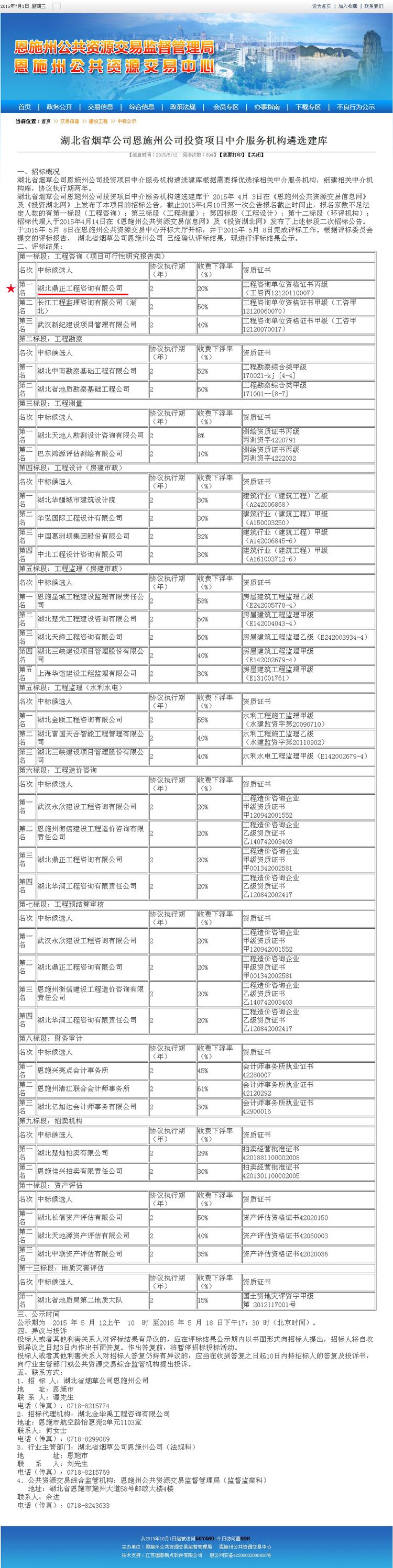 【經(jīng)營成果】我司入選湖北省煙草公司恩施州公司投資項(xiàng)目工程咨詢中介服務(wù)機(jī)構(gòu)庫