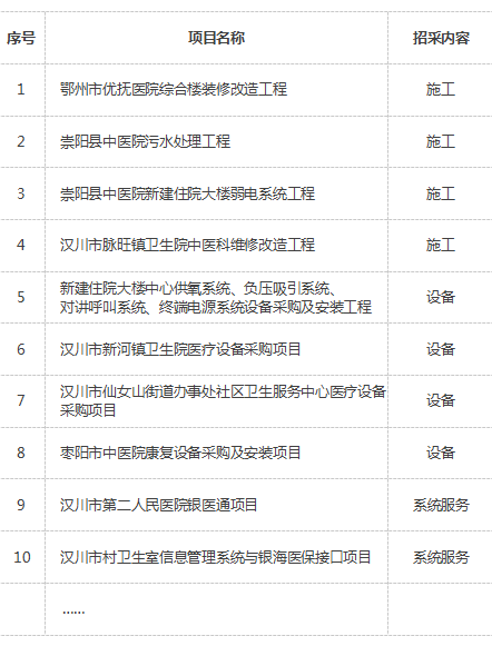 截止目前我司已為鄂州、咸寧、漢川、襄陽等地區(qū)的公立民營醫(yī)院及基層醫(yī)療衛(wèi)生機構(gòu)提供了30多個項目的招采服務。